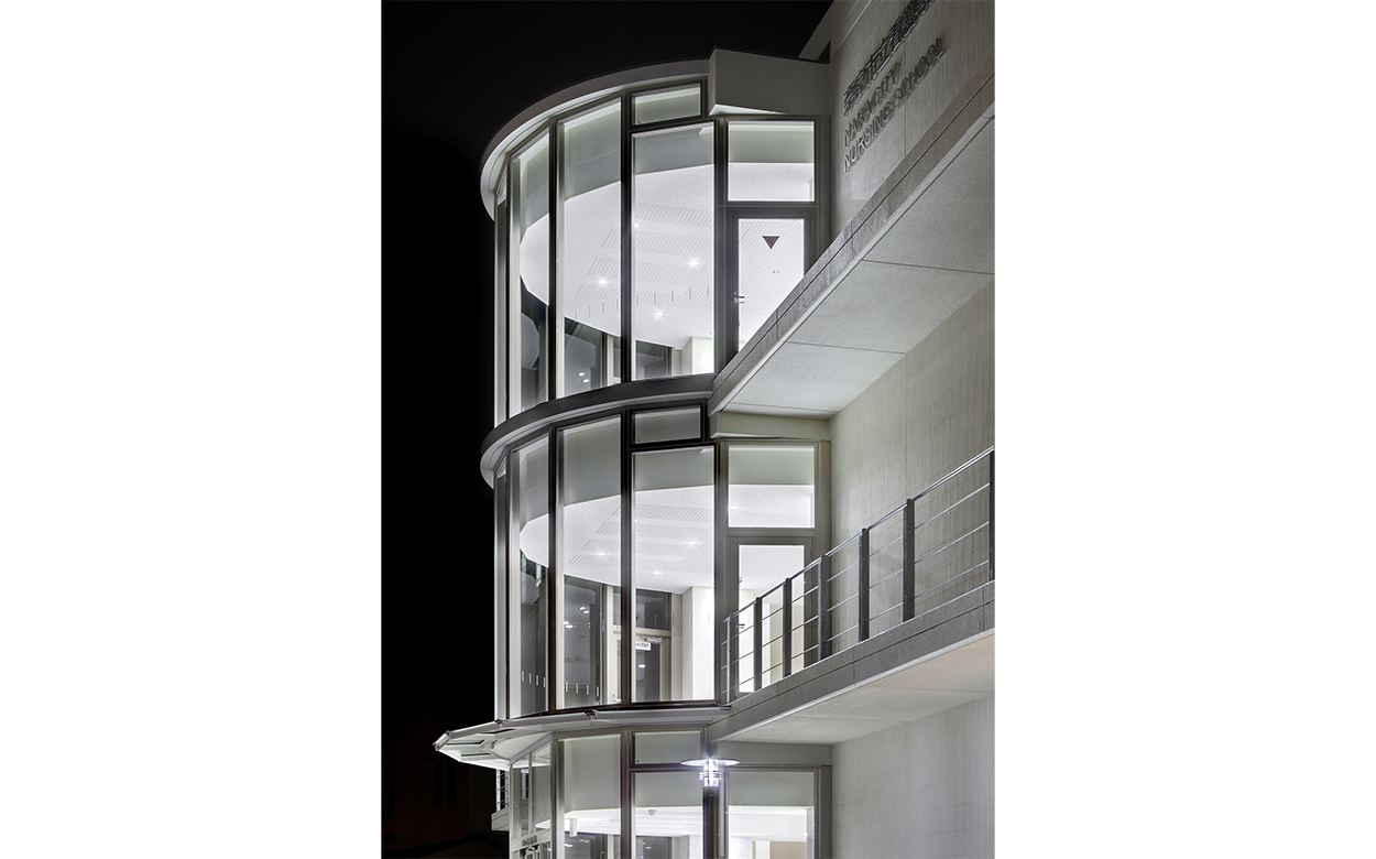 市立奈良病院の改築に合わせ、看護師の育成・確保をめざし、市立看護専門学校を新設。建物中央廊下の3層吹き抜けで学校全体に一体感を持たせ、また各階中央廊下両端に設けたロビーで、仲間と集い語り合う空間を創出。