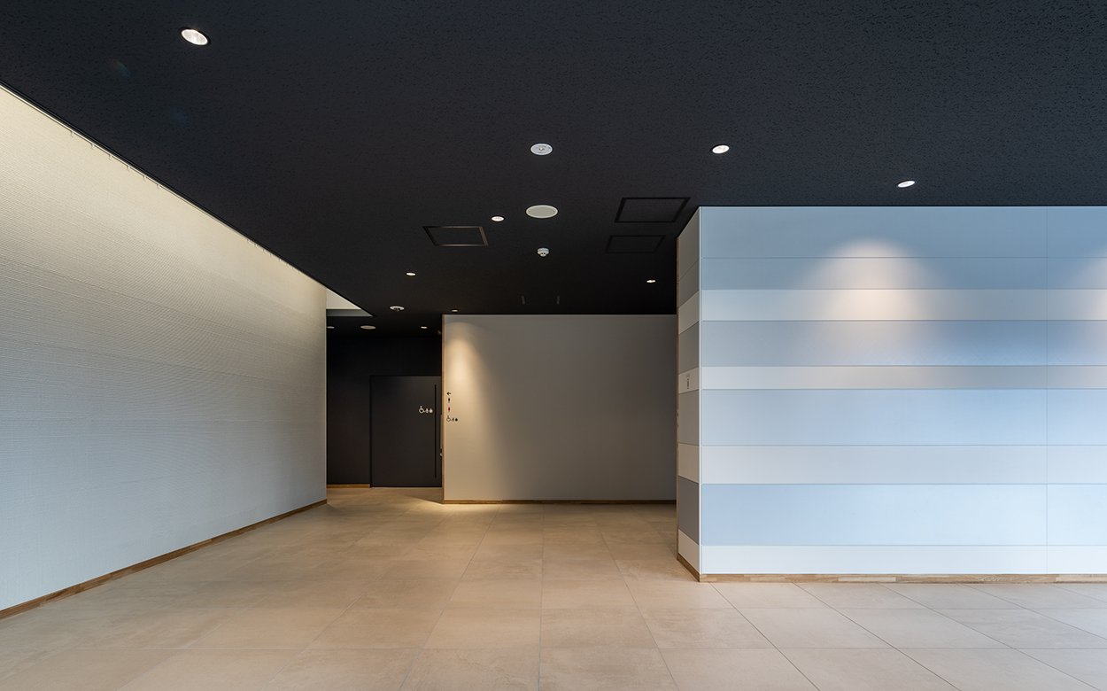 当社作成の血液センターガイドラインに則った日本赤十字社施設。信濃川から吹く強い西風対策と、積雪時でも命をつなぐ血液の搬送を止めないための様々な工夫。雪国新潟を象徴する、静かな銀世界をエントランスに表現。